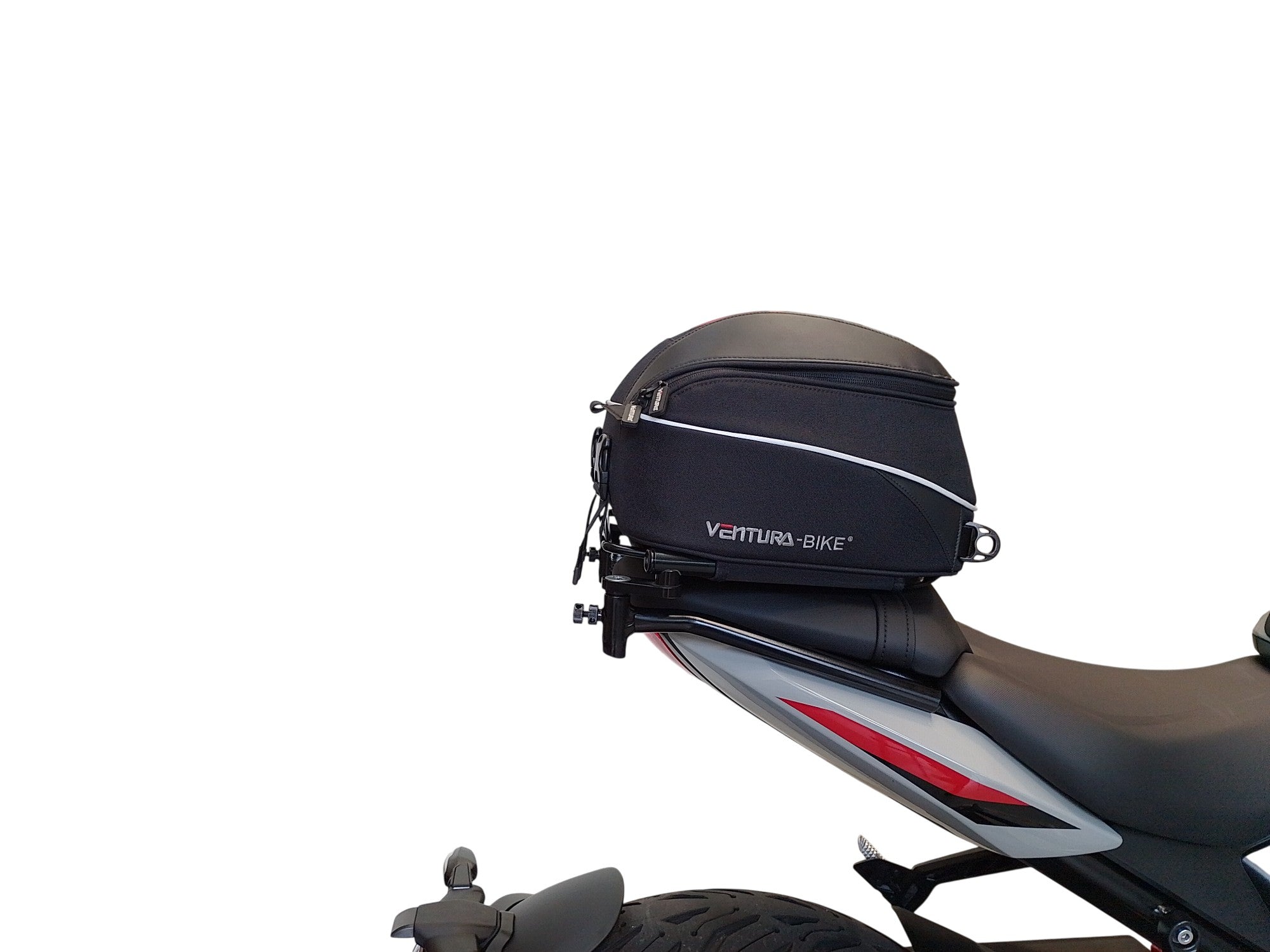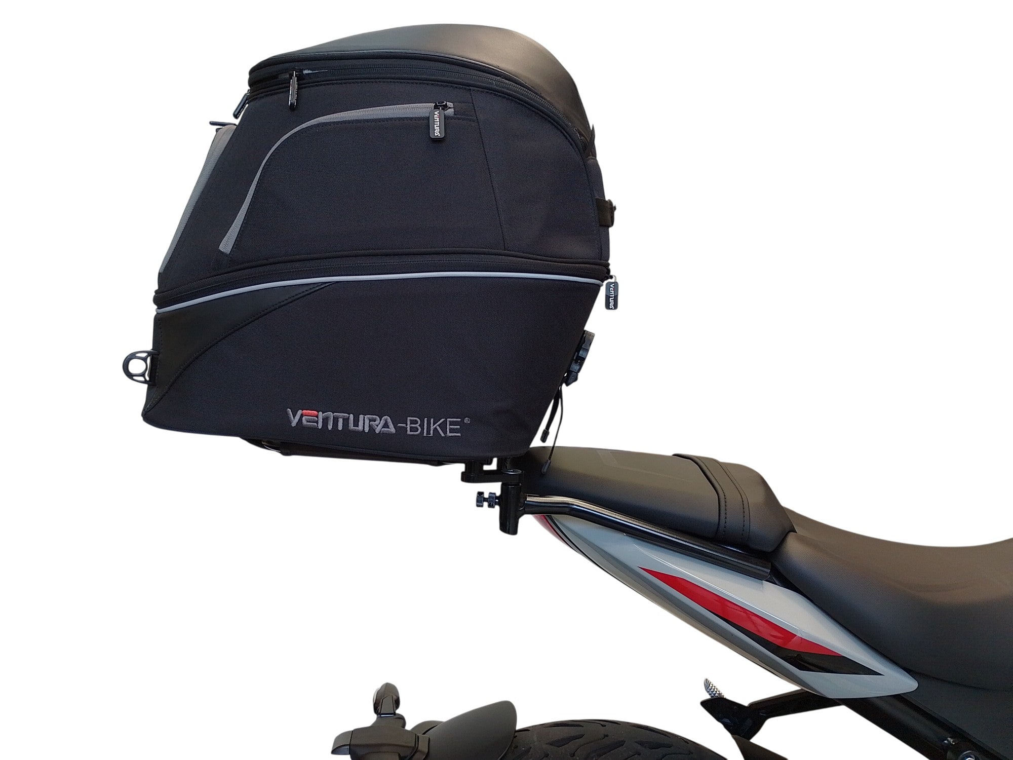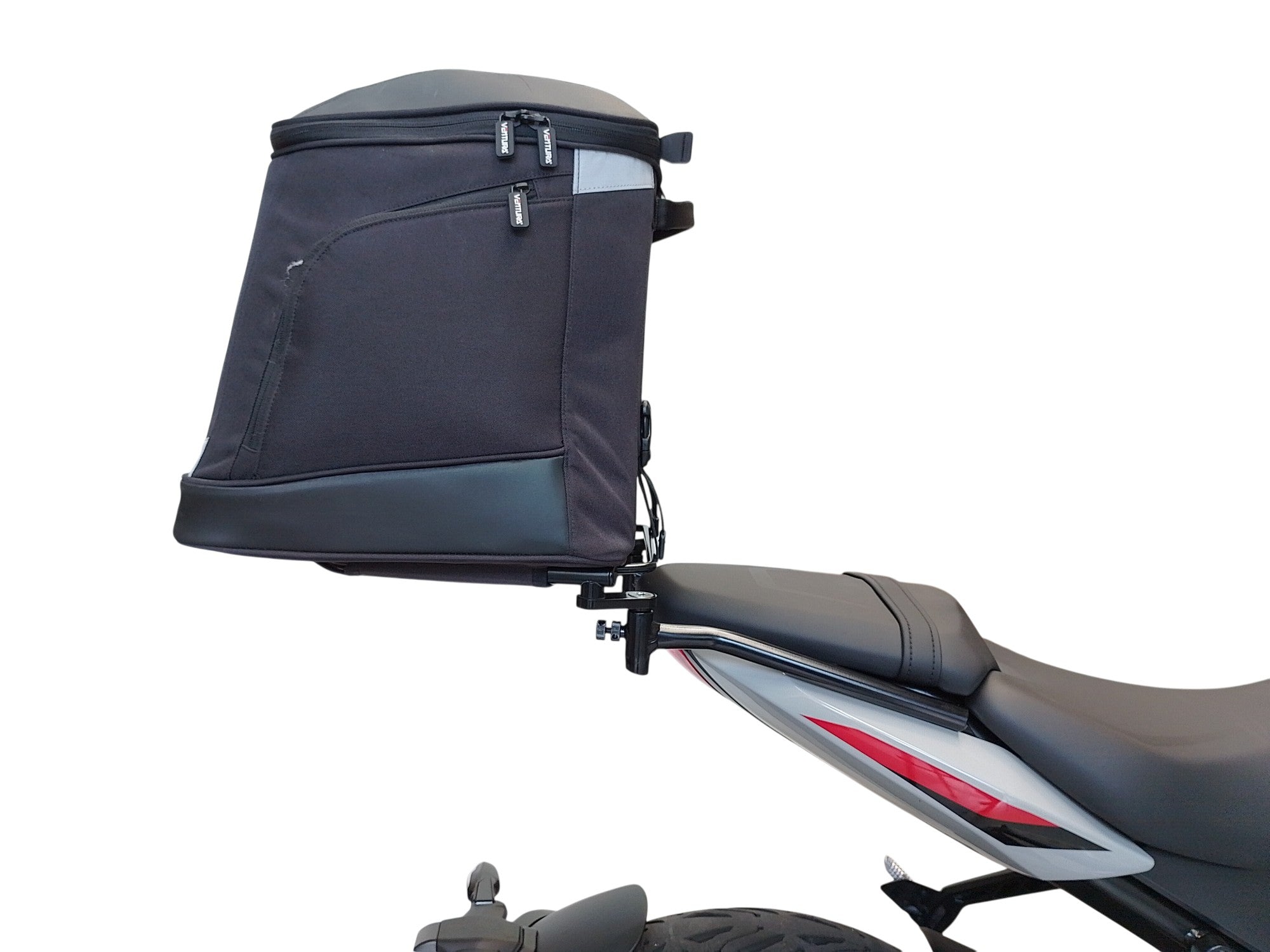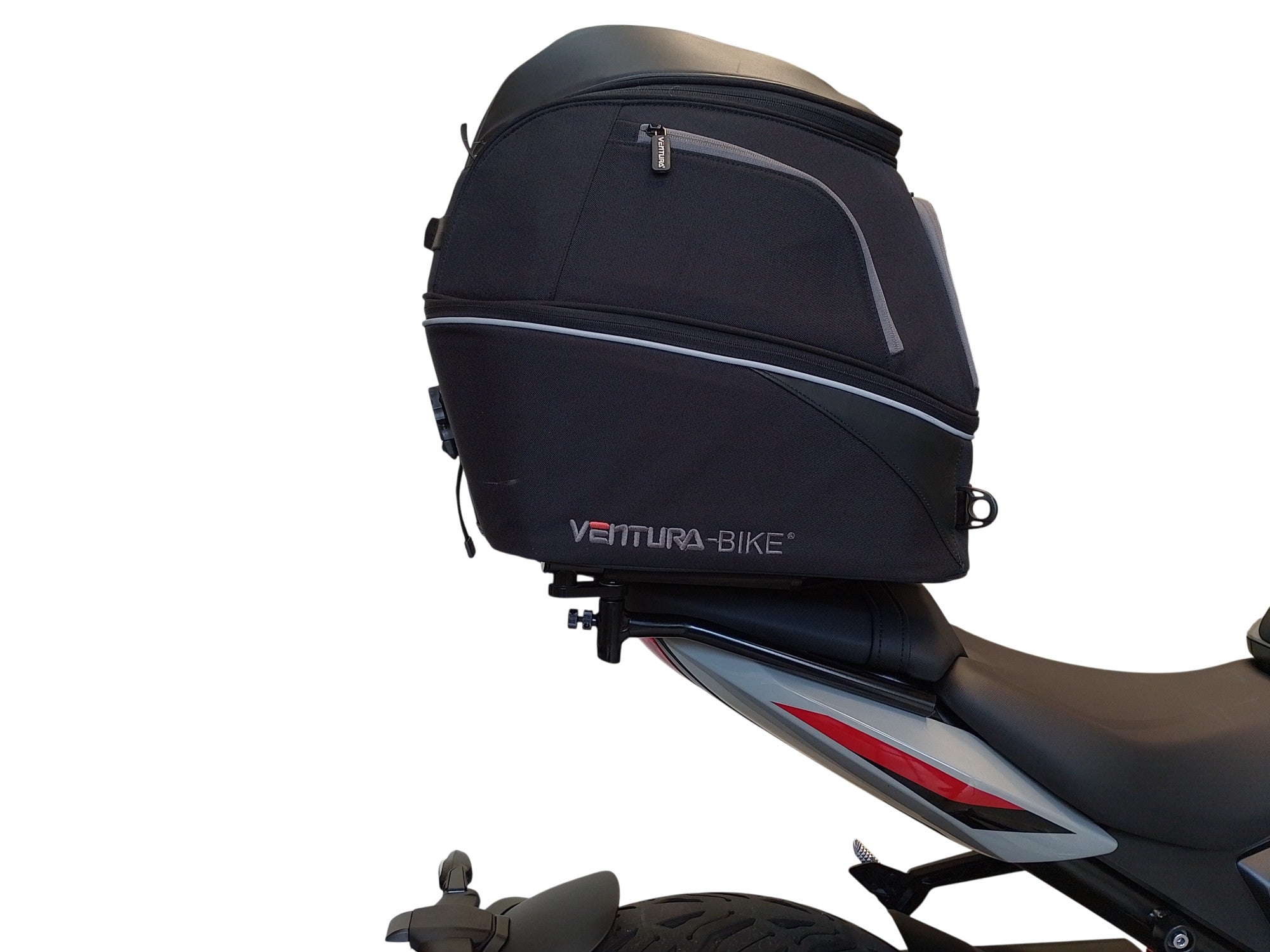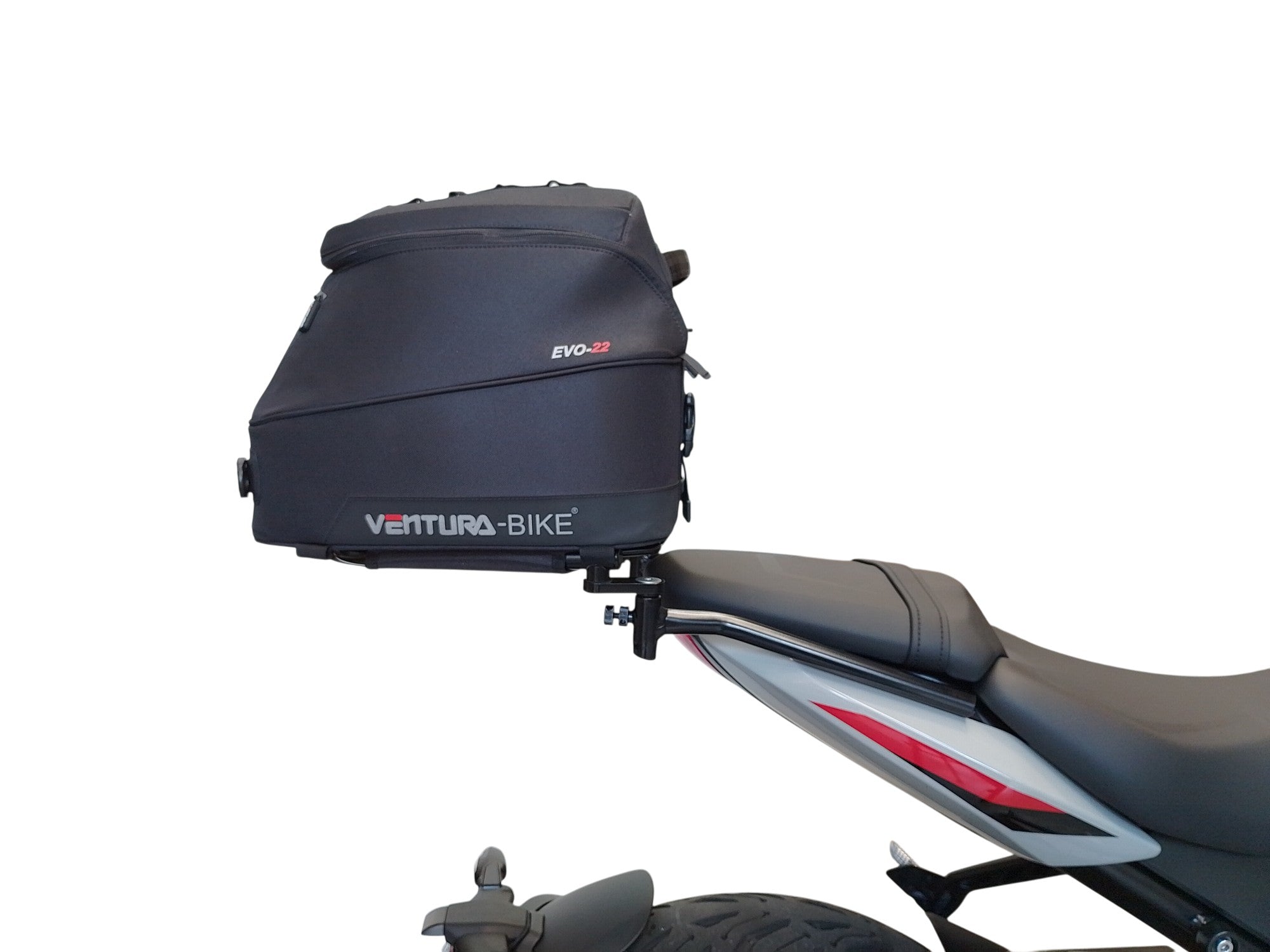 Our latest EVO design for the Ventura Bike-Pack System uses a horizontal rack that secures and supports the packs ensuring there is no load movement when riding.