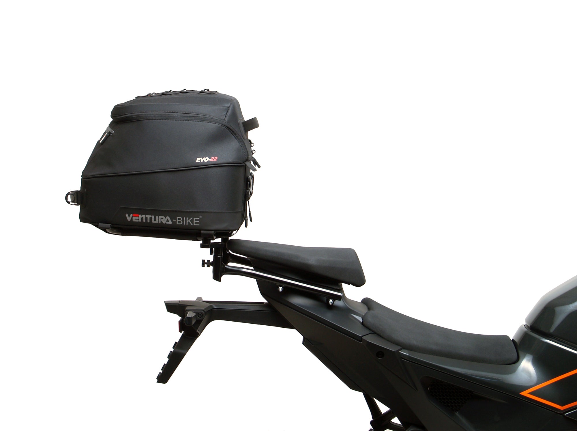 Our latest EVO design for the Ventura Bike-Pack System uses a horizontal rack that secures and supports the packs ensuring there is no load movement when riding.