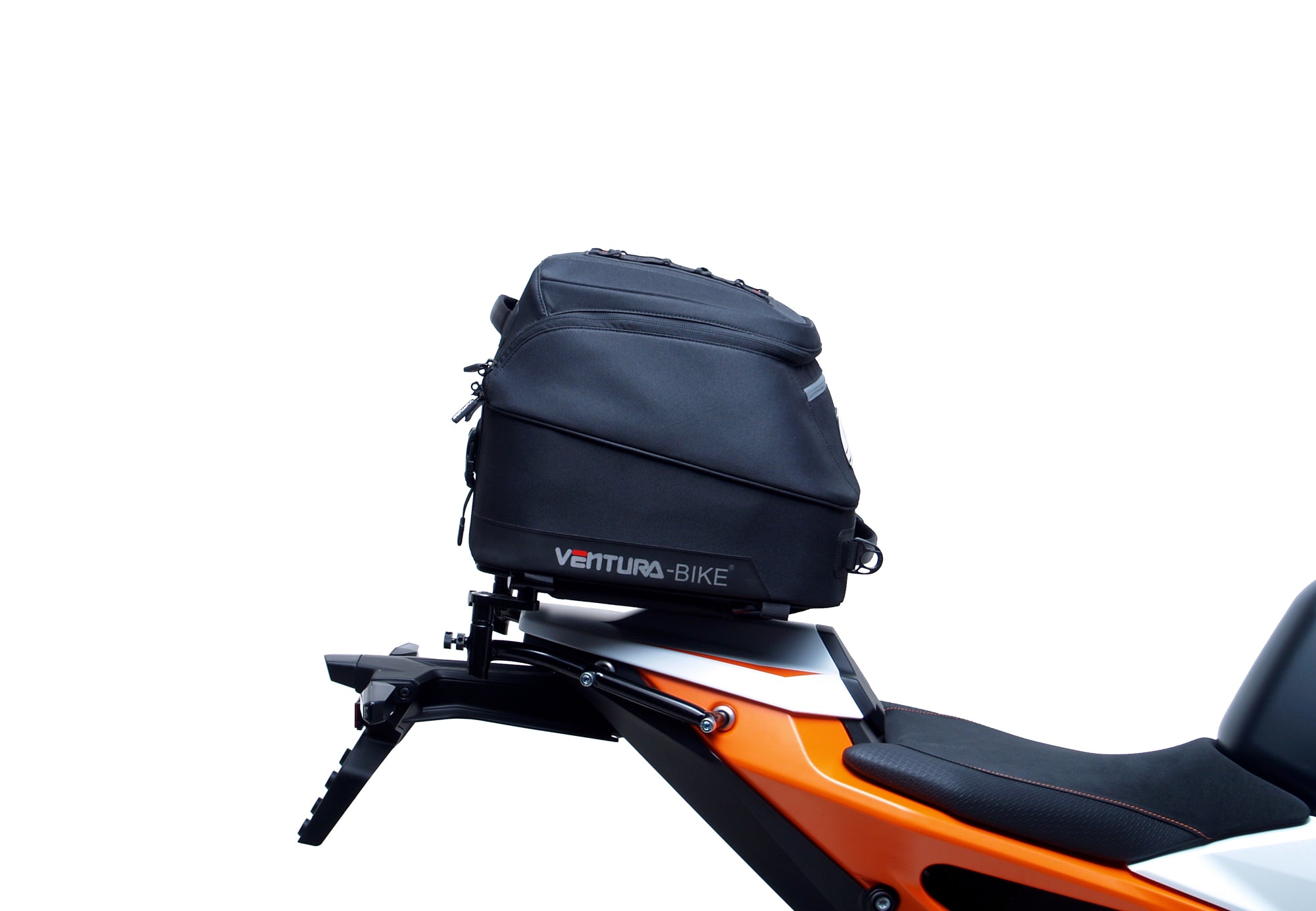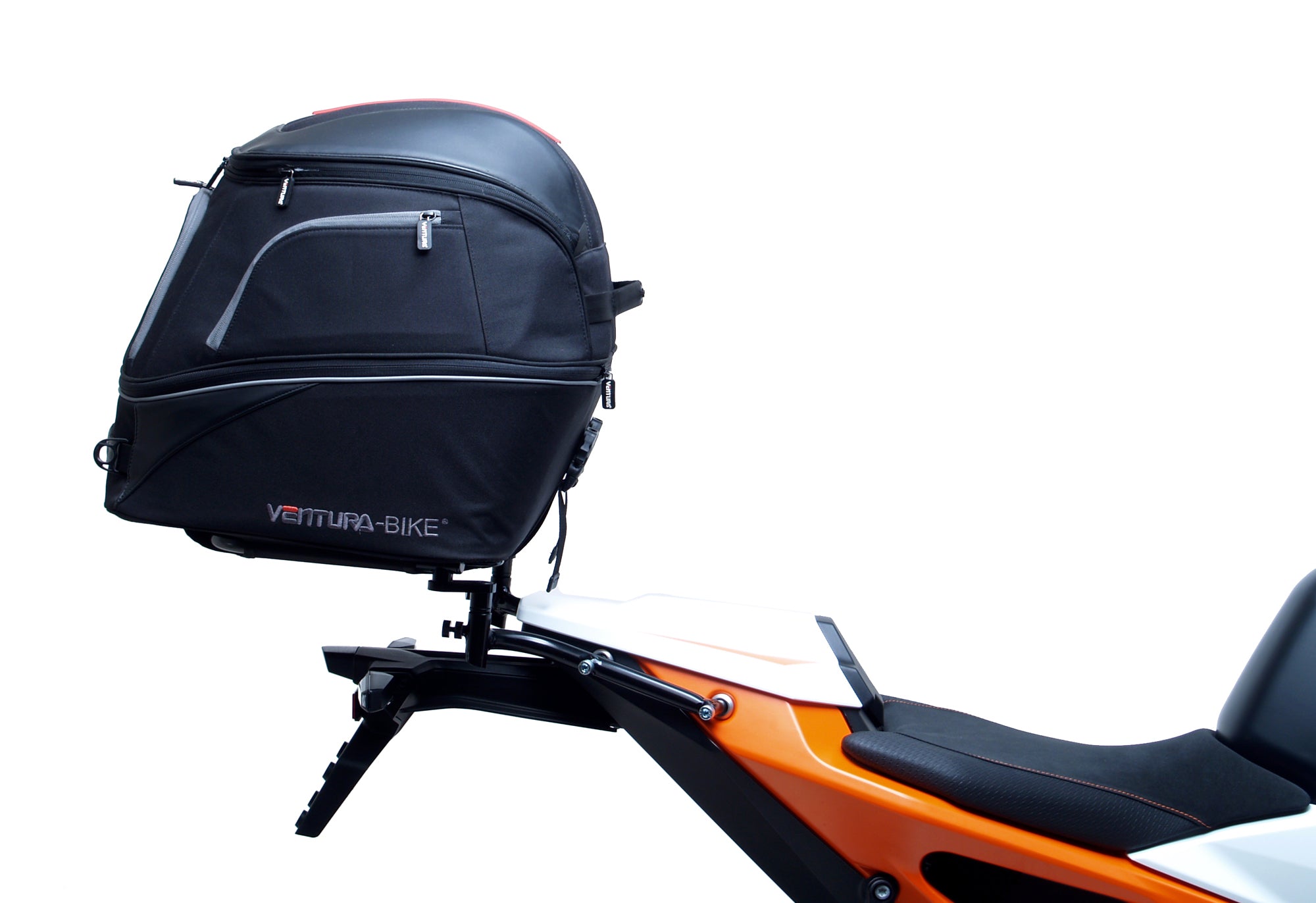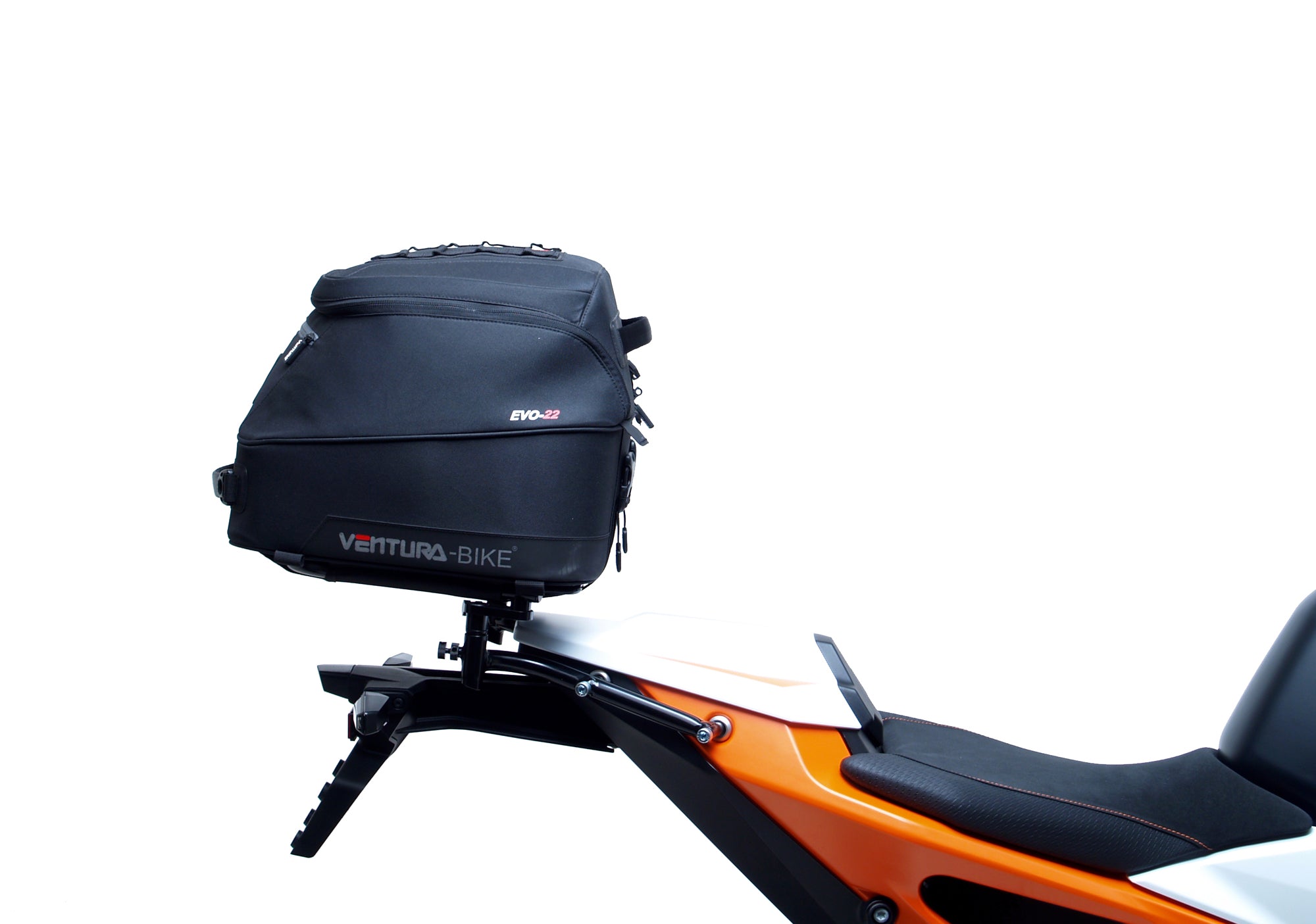 Our latest EVO design for the Ventura Bike-Pack System uses a horizontal rack that secures and supports the packs ensuring there is no load movement when riding.