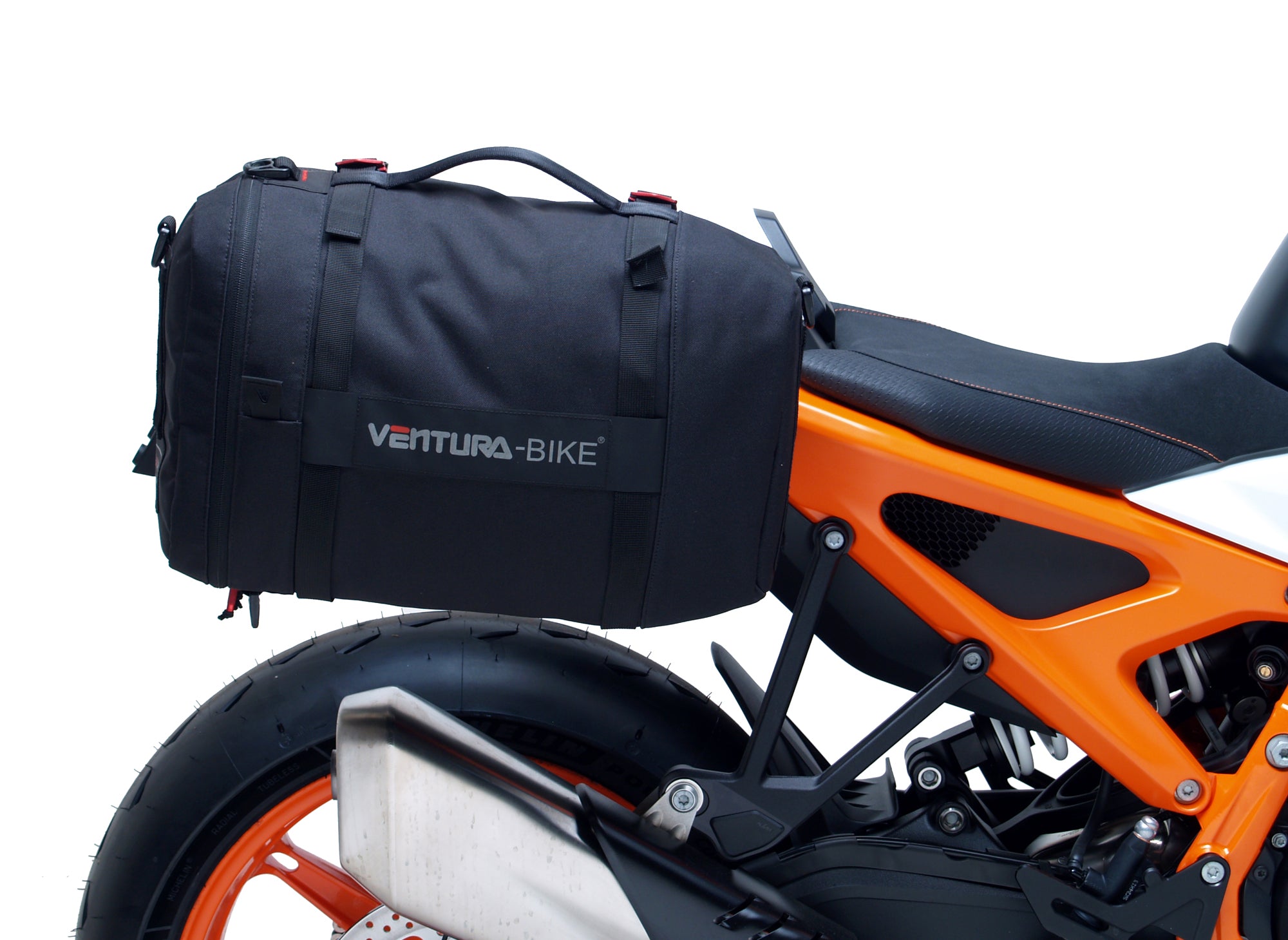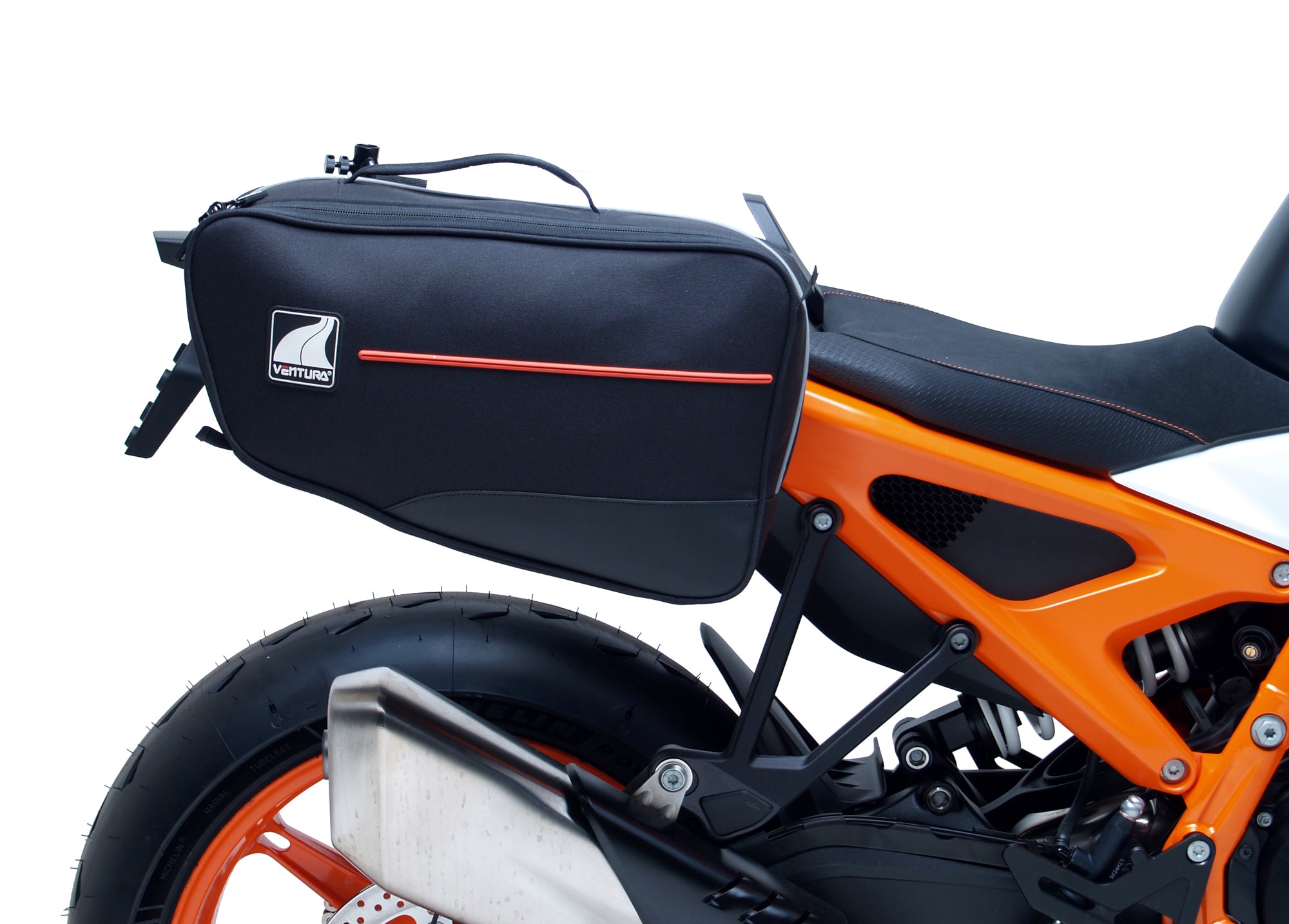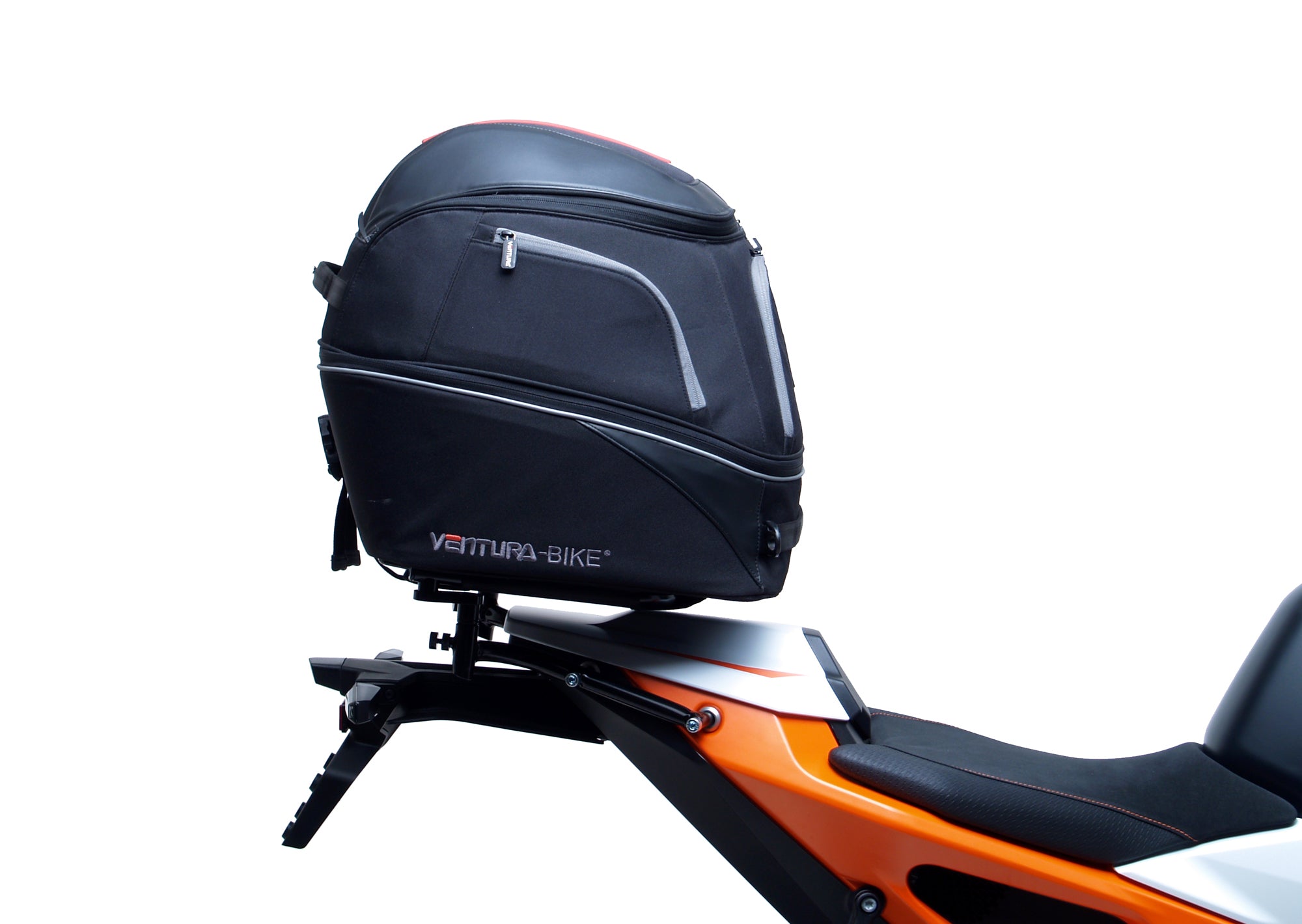 Our latest EVO design for the Ventura Bike-Pack System uses a horizontal rack that secures and supports the packs ensuring there is no load movement when riding.